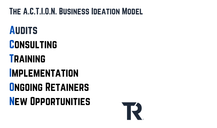 So that's A.C.T.I.O.N. business ideation model. You can pick one or all of these, but I highly recommend offering audits since it establishes the baseline for all your other service offerings.